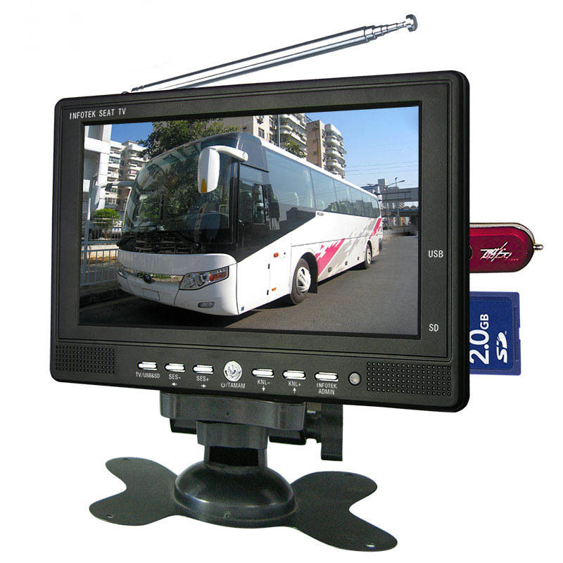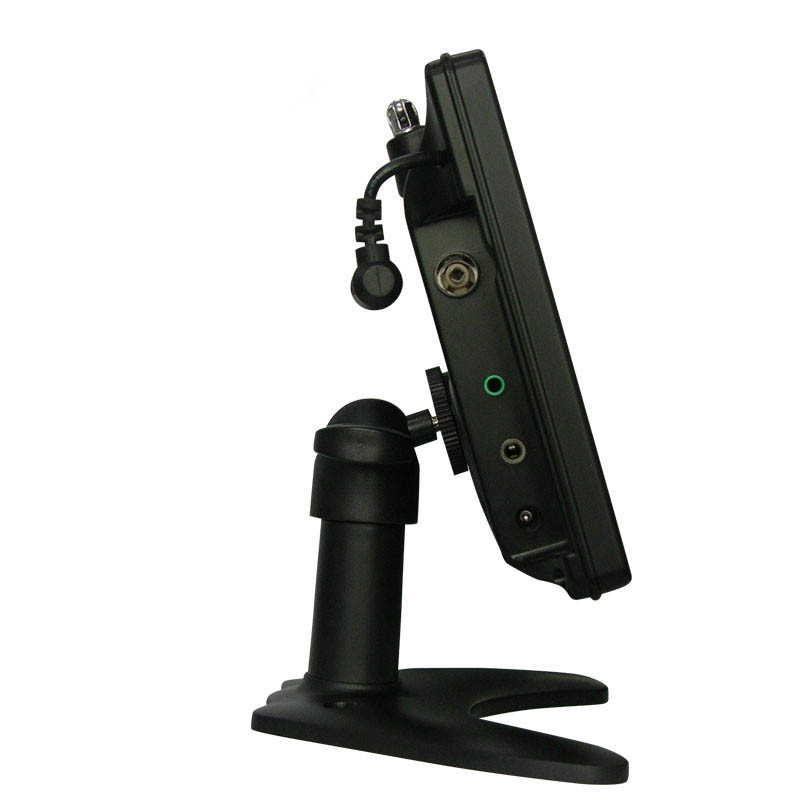 The rear view shows a stable desktop-style mounting solution and a well-balanced screen size that offers clear visibility without taking up excessive space. With support for external storage and simple physical controls, this monitor is easy to operate in daily driving scenarios. Its portable structure and wide voltage compatibility make it suitable for cars, trucks, RVs, buses, and trailers, offering a practical display solution for safety, monitoring, and in-vehicle entertainment across diverse use cases.
