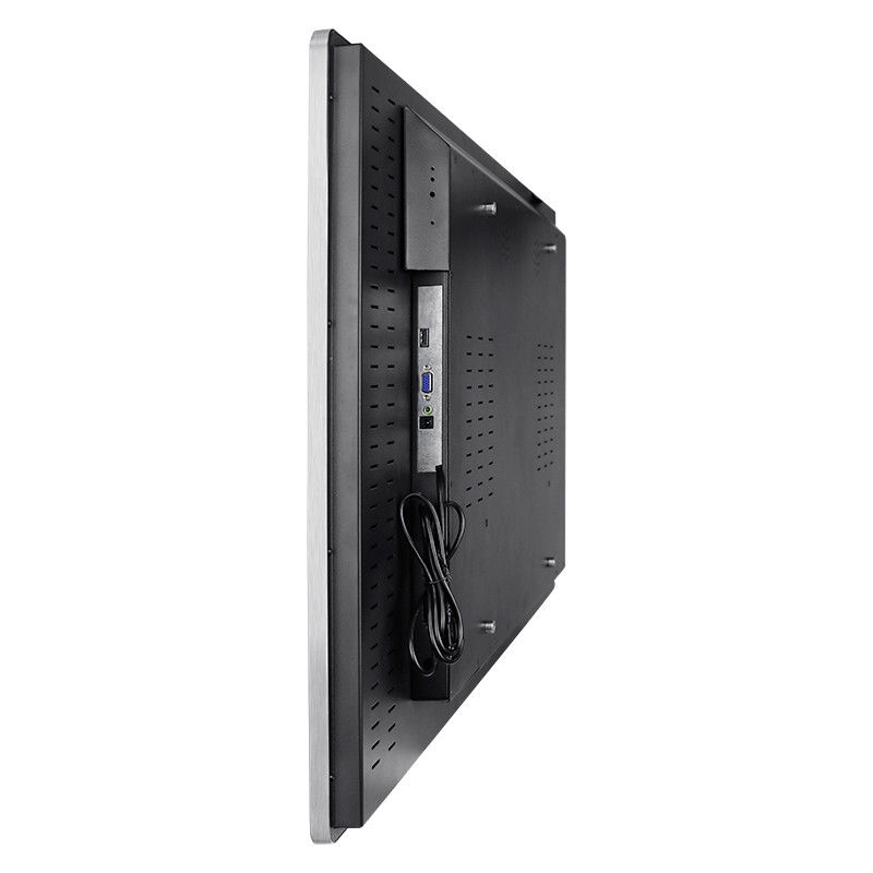 The rear view highlights an industrial-grade metal housing with multiple ventilation slots, supporting effective heat dissipation during long-hour operation. A flat mounting surface and reinforced structure make the display suitable for wall mounting or embedded installation in kiosks and cabinets. The integrated cable management and solid back cover design help keep installation clean and secure. Built for commercial and professional environments, this construction improves durability, simplifies maintenance, and supports stable performance in continuous-use applications.